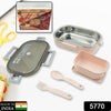 5770 Stainless Steel & Heavy Plastic Material Lunch Box for Kids Air Tight, BPA Free, Easy to Clean, Tiffin Box for School Office College, Snack Box with Spoon and Fork (1 Pc)