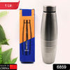 6859 Stainless Steel Sports Water Bottles, BPA Free and Leak Proof Cap and Steel Bottle silver, Steel fridge Bottle For office/Gym/School 1000 Ml