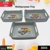 3645 Multipurpose Organising & Storage Plastic Tray, Fruit & Vegetable/ Multi Purpose Tray, Organizer for Kitchen, Countertop, Cabinet, Bathroom Plastic Storage Basket For Store Fruits, Vegetables, Magazines, Cosmetics, Stationary Set of 3