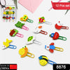 8876 Multifunction Cartoon Paper Clips, Durable & Rustproof, Colored Paper Clips for Paperwork, DIY Work, classify Documents, Bookmark, Snacks Bag Clips, Suitable for Home, School, Office (12 Pcs Set)