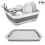 Collapsible dish drainer offers space for draining and drying after washing. Instead of stacking piles of dishes on the side of the sink, place them in this organized rack that can house plates, utensils, and more. Fits neatly on counter-tops and cabinets